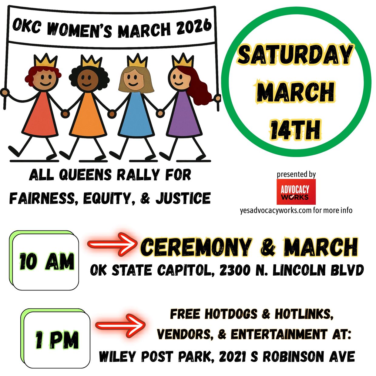 along with Lelamae’s Catering, Page Six Oklahoma, King Kopy, & BALDHEADZ are official sponsors of the 2026 OKC Women's March, hosted and organized by Advocacy Works.